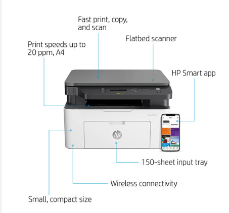پرینتر لیزری HP Laser MFP 135w یکی از محصولات کاربردی و مقرون به صرفه شرکت اچپی است که قابلیتهای چاپ، اسکن و کپی را به صورت یکجا ارائه میدهد. این دستگاه برای کاربران خانگی و اداری کوچک طراحی شده و با ابعاد جمعوجور و وزن 7.46 کیلوگرم، فضای کمی را اشغال میکند. پرینتر HP Laser MFP 135W با طراحی مقاوم و جمعوجور و اتصال بیسیم (Wi-Fi) و Wi-Fi Direct برای چاپ از موبایل و لپتاپ بدون نیاز به کابل، مناسب فضاهای کوچک است.