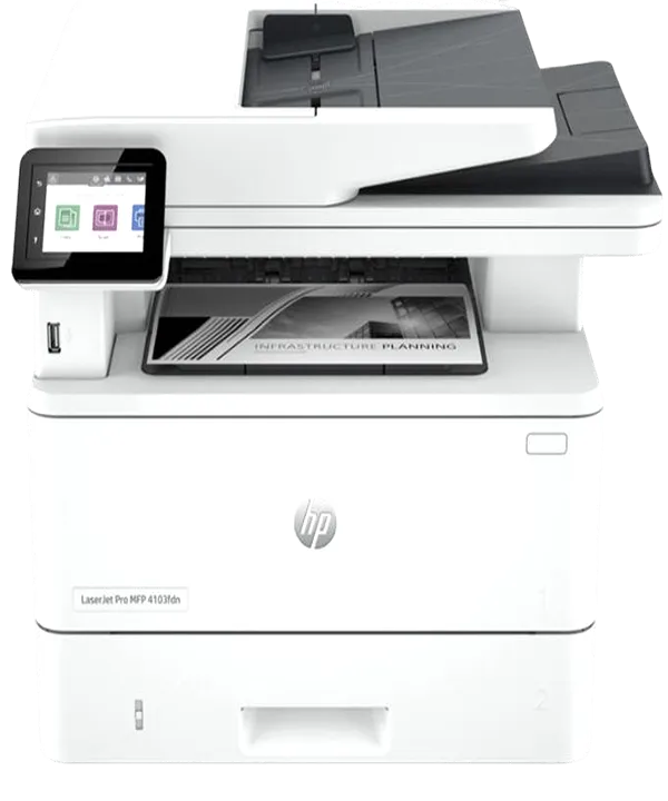 تکنولوژی چاپ پرینتر چندکاره لیزری اچ پی LaserJet Pro MFP 4103fdn:  این دستگاه یک پرینتر لیزری تک‌رنگ (Monochrome Laser) است.عملکرد پرینتر مبتنی بر ذوب پودر تونر بر سطح کاغذ با استفاده از حرارت و درام نوری است. این روش چاپ، سرعت و دقت بالایی دارد و برای چاپ‌های متنی بسیار مناسب است.