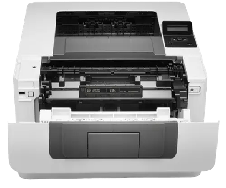 1- راهاندازی پرینتر HP LaserJet Pro 404N بسیار ساده است. ابتدا دستگاه را از بستهبندی خارج کرده و تمام نوارها و محافظها را بردارید. سپس کارتریج تونر را خارج کرده، به آرامی به طرفین تکان دهید تا تونر به صورت یکنواخت پخش شود و درون دستگاه نصب کنید.
